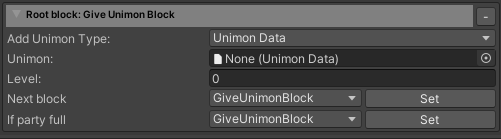 | Add Unimon Type | The type of Unimon we want to give the player.